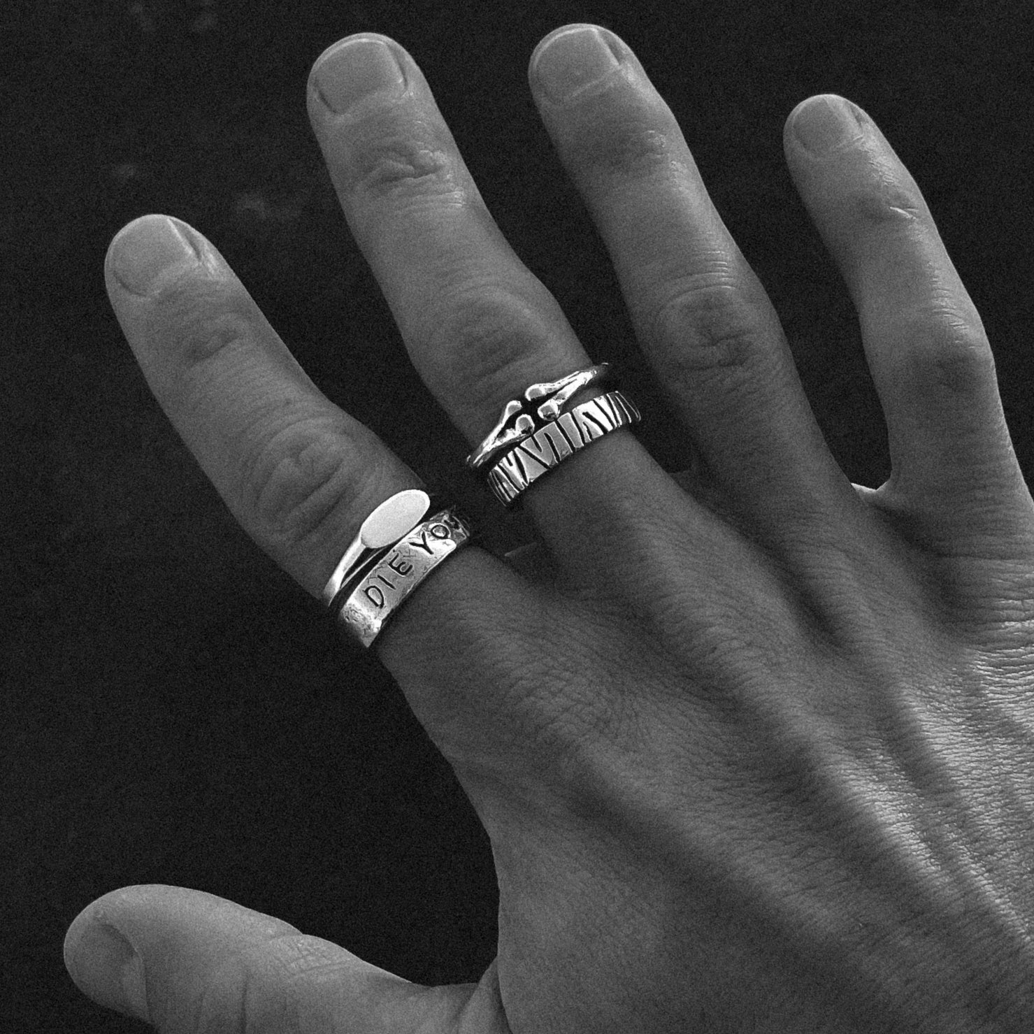 The Die Young ring is a rugged band with a hand etched "Die Young"